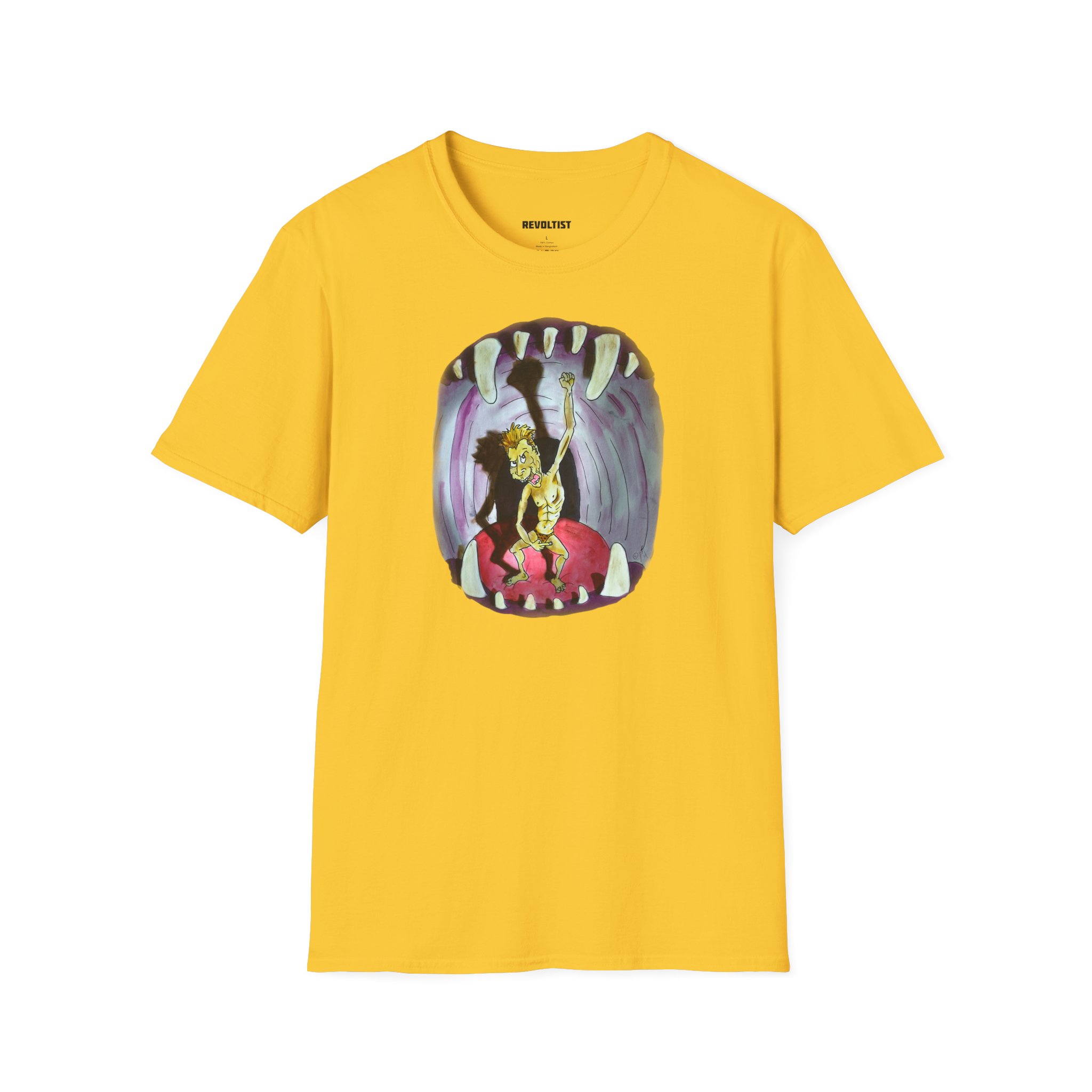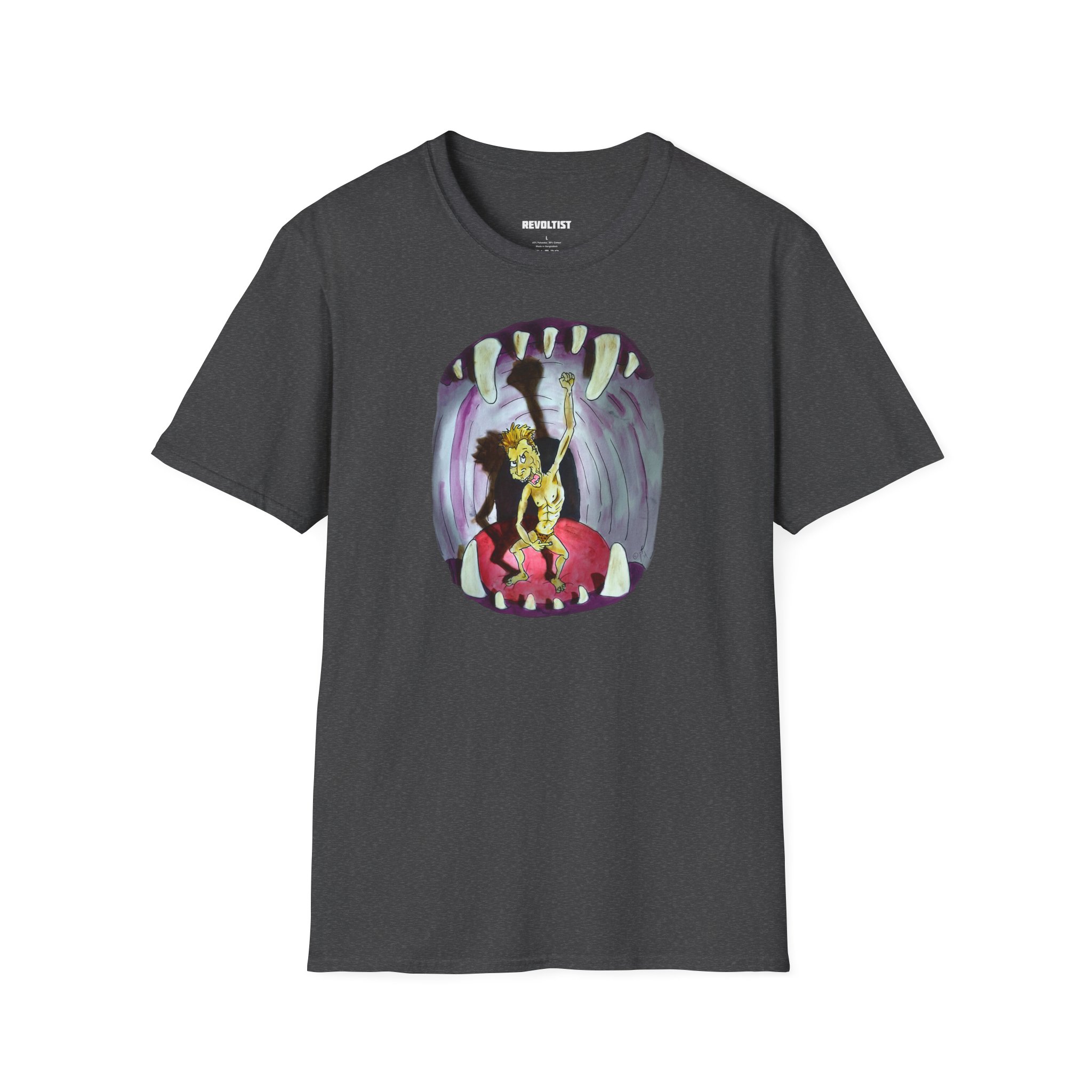 A Bite Attack graphic art T-shirt that exudes a bold and edgy vibe, perfect for casual wear or making a statement. Suitable for adults, this T-shirt is made from 100% ring-spun cotton, ensuring durability and comfort all year round. The classic fit and crew neckline make it versatile for any occasion, from formal to semi-formal. Ideal for those looking to stand out and express their unique style.
