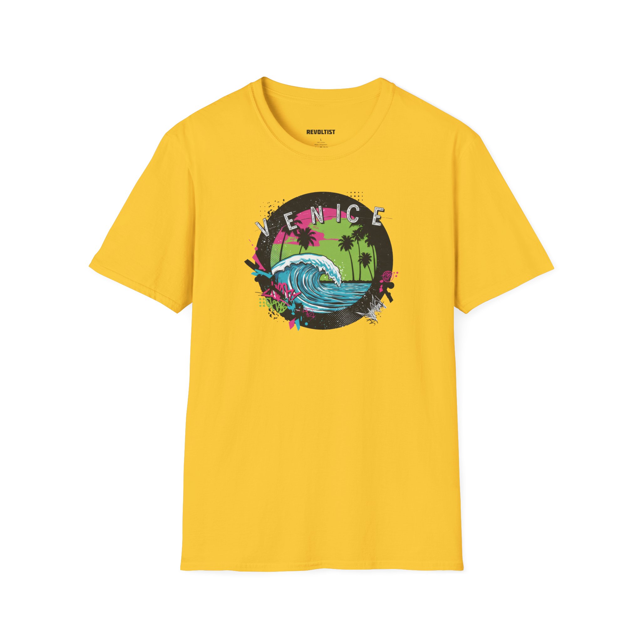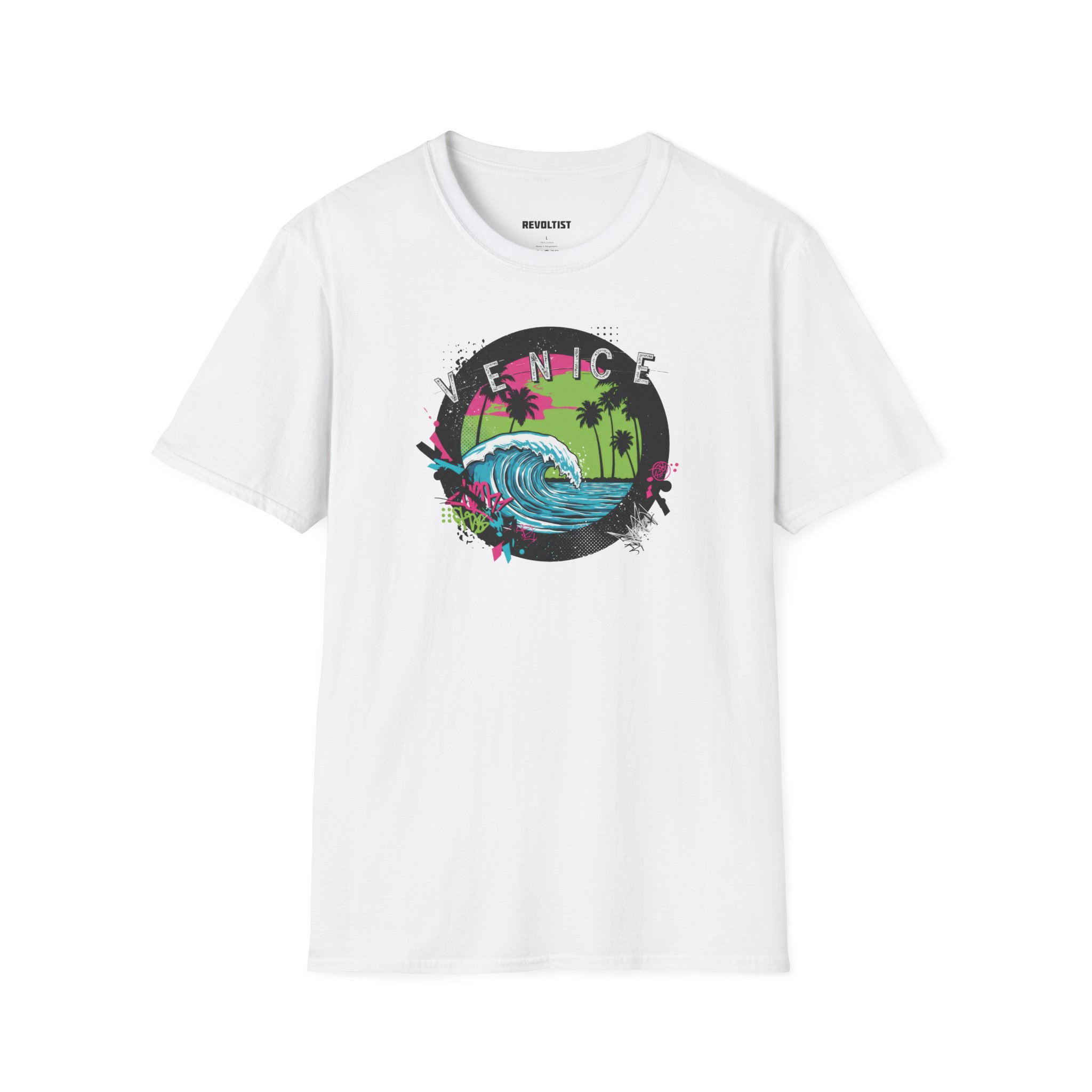 This Retro Venice Wave T-Shirt exudes a nostalgic vibe with its retro design. Perfect for those who love vintage styles and want to stand out with a unique graphic tee. Ideal for casual wear, summer outings, beach trips, and festivals.